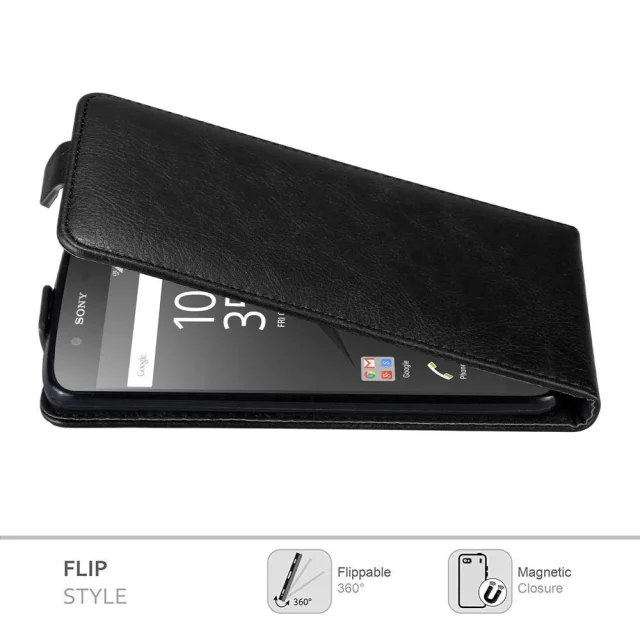 Cadorabo Ohišje, združljivo z Sony Xperia Z5 v nočna črna - Zaščitni ovitek v obliki flipa z magnetnim zapiranjem
