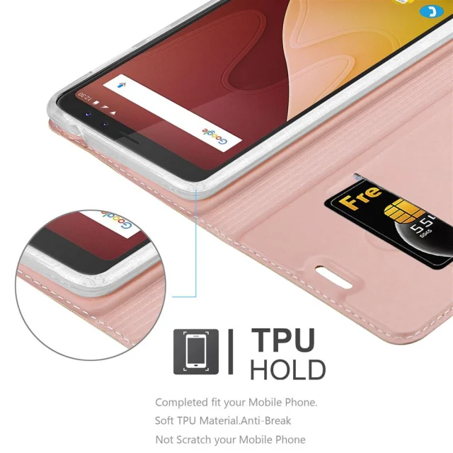 Cadorabo Ohišje, združljivo z WIKO VIEW PRIME v klasična rožnata zlata - Zaščitni ovitek z magnetnim zapiranjem, stoječo funkcijo in režo za kartice