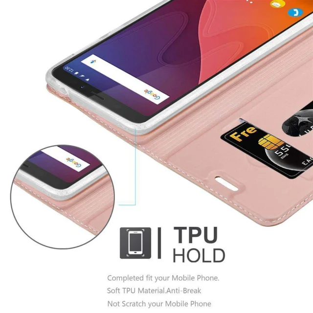Cadorabo Ohišje, združljivo z WIKO VIEW XL v klasična rožnata zlata - Zaščitni ovitek z magnetnim zapiranjem, stoječo funkcijo in režo za kartice