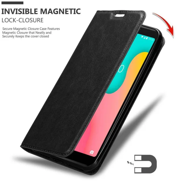 Cadorabo Ohišje, združljivo z WIKO Y60 v nočna črna - Zaščitni ovitek z magnetnim zapiranjem, stoječo funkcijo in režo za kartice