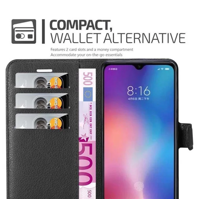 Cadorabo Ohišje, združljivo z Xiaomi Mi 9 v oksidna črna - Zaščitni ovitek z magnetnim zapiranjem, stoječo funkcijo in režo za kartice