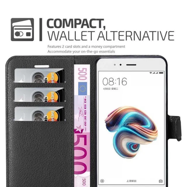 Cadorabo Ohišje, združljivo z Xiaomi Mi A1 / Mi 5X v oksidna črna - Zaščitni ovitek z magnetnim zapiranjem, stoječo funkcijo in režo za kartice