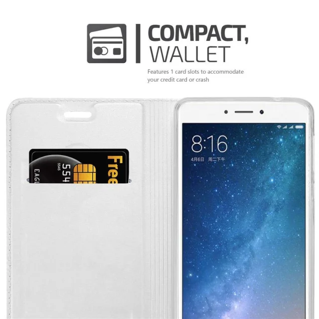 Cadorabo Ohišje, združljivo z Xiaomi Mi MAX 2 v klasično srebrno - Zaščitni ovitek z magnetnim zapiranjem, stoječo funkcijo in režo za kartice