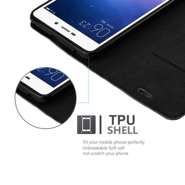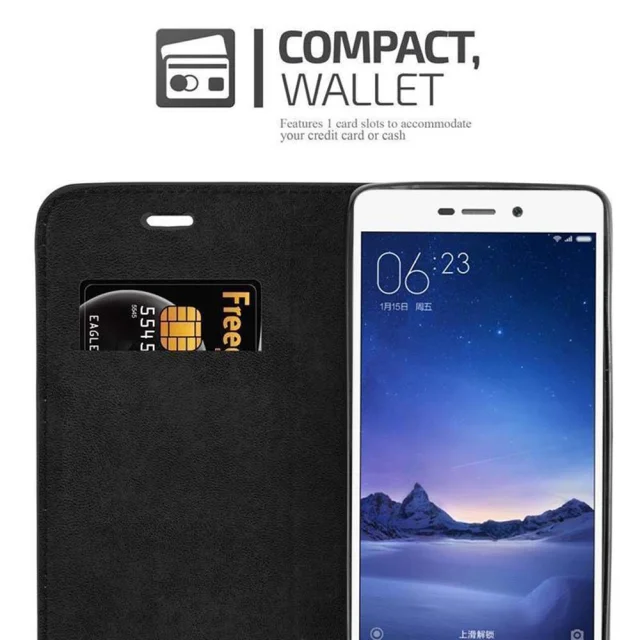 Cadorabo Ohišje, združljivo z Xiaomi RedMi 3S v nočna črna - Zaščitni ovitek z magnetnim zapiranjem, stoječo funkcijo in režo za kartice