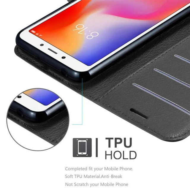 Cadorabo Ohišje, združljivo z Xiaomi RedMi 6A v oksidna črna - Zaščitni ovitek z magnetnim zapiranjem, stoječo funkcijo in režo za kartice
