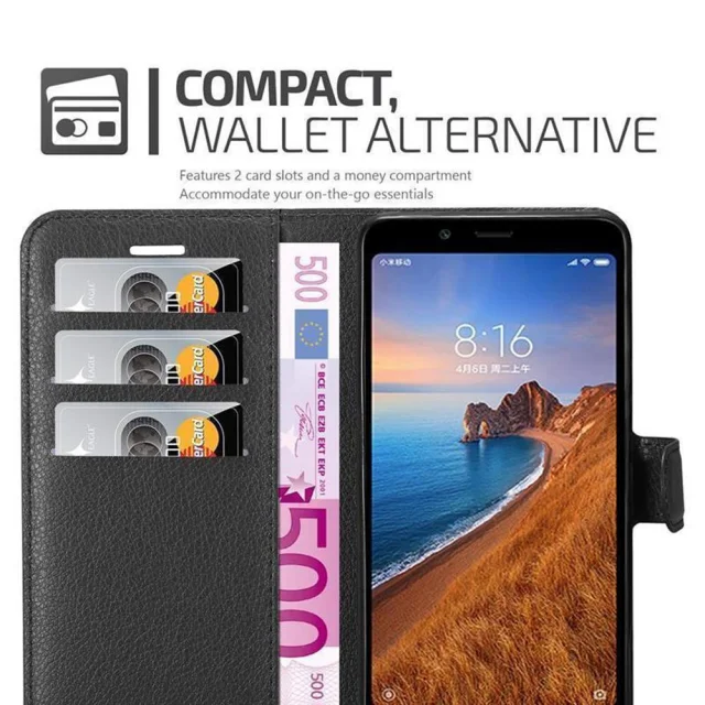 Cadorabo Ohišje, združljivo z Xiaomi RedMi 7A v oksidna črna - Zaščitni ovitek z magnetnim zapiranjem, stoječo funkcijo in režo za kartice