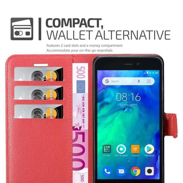 Cadorabo Ohišje, združljivo z Xiaomi RedMi GO v rdeče sladkorno jabolko - Zaščitni ovitek z magnetnim zapiranjem, stoječo funkcijo in režo za kartice
