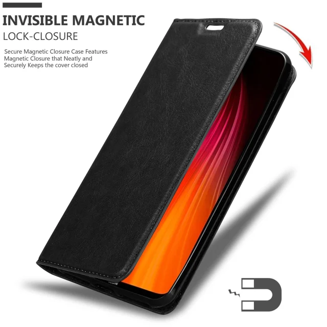 Cadorabo Ohišje, združljivo z Xiaomi RedMi NOTE 8 v nočna črna - Zaščitni ovitek z magnetnim zapiranjem, stoječo funkcijo in režo za kartice