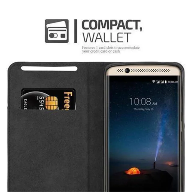 Cadorabo Ohišje, združljivo z ZTE Axon 7 v nočna črna - Zaščitni ovitek z magnetnim zapiranjem, stoječo funkcijo in režo za kartice