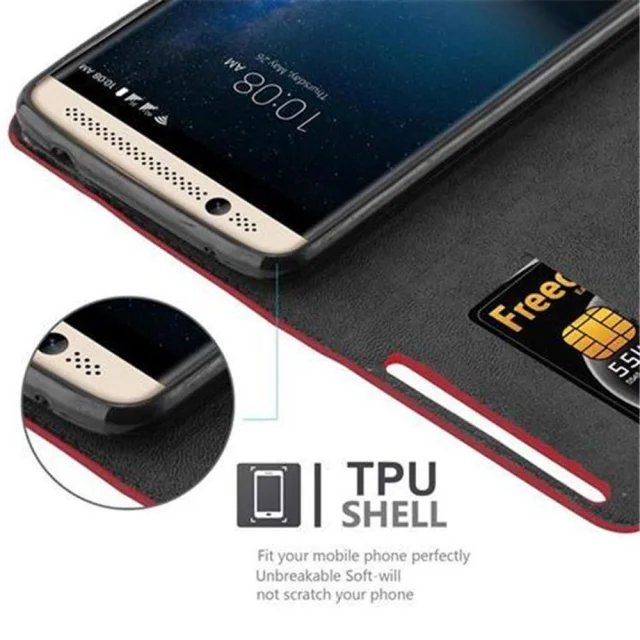 Cadorabo Ohišje, združljivo z ZTE Axon 7 v rdeče jabolko - Zaščitni ovitek z magnetnim zapiranjem, stoječo funkcijo in režo za kartice