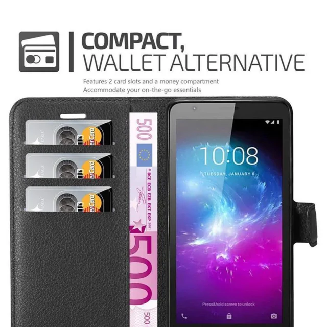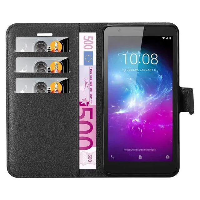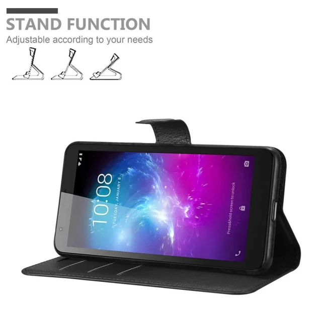 Cadorabo Ohišje, združljivo z ZTE Blade A3 2019 v oksidna črna - Zaščitni ovitek z magnetnim zapiranjem, stoječo funkcijo in režo za kartice