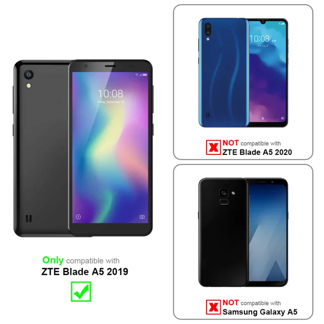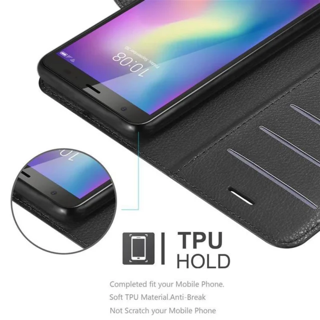 Cadorabo Ohišje, združljivo z ZTE Blade A5 2019 v oksidna črna - Zaščitni ovitek z magnetnim zapiranjem, stoječo funkcijo in režo za kartice