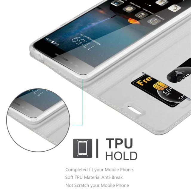Cadorabo Ohišje, združljivo z ZTE Blade A612 v klasično srebrno - Zaščitni ovitek z magnetnim zapiranjem, stoječo funkcijo in režo za kartice