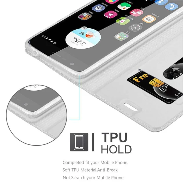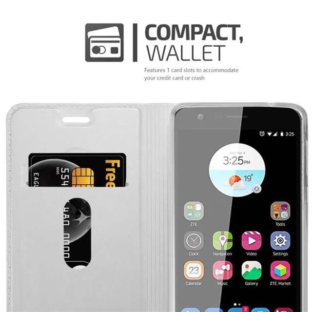 Cadorabo Ohišje, združljivo z ZTE Blade V8 v klasično srebrno - Zaščitni ovitek z magnetnim zapiranjem, stoječo funkcijo in režo za kartice