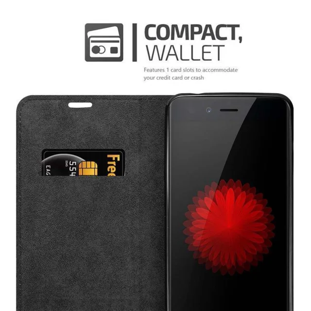 Cadorabo Ohišje, združljivo z ZTE Nubia Z11 MINI S v nočna črna - Zaščitni ovitek z magnetnim zapiranjem, stoječo funkcijo in režo za kartice