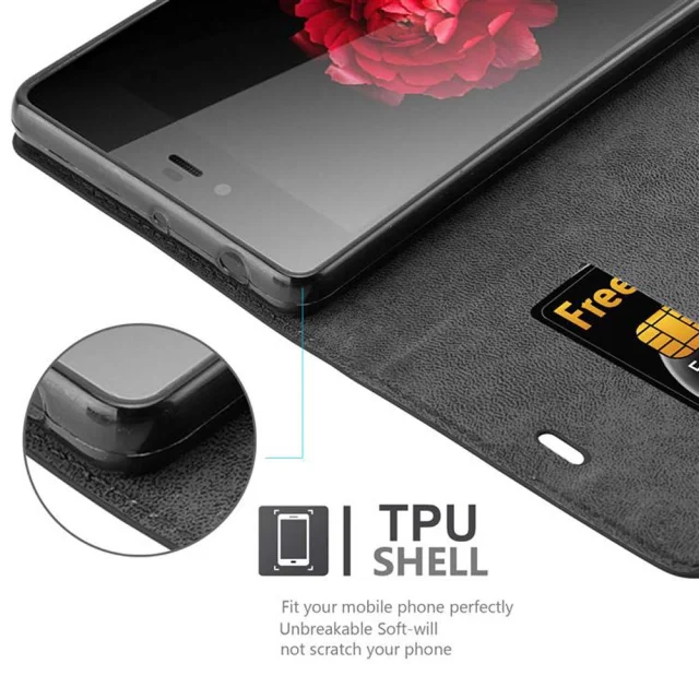 Cadorabo Ohišje, združljivo z ZTE Nubia Z9 MAX v nočna črna - Zaščitni ovitek z magnetnim zapiranjem, stoječo funkcijo in režo za kartice