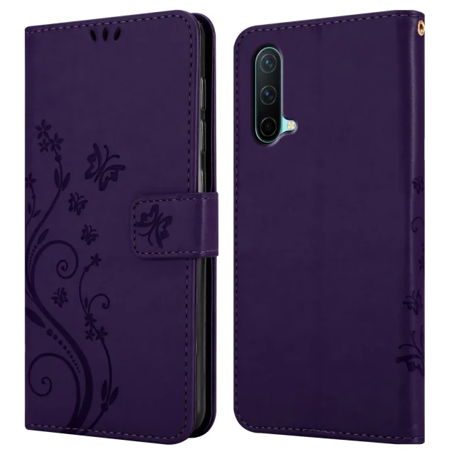 CADORABO OnePlus temno vijolična - zaščitni pokrov pri oblikovanju cvetja z magnetnim zapiranjem, stoječimi funkcijami in režami za kartice