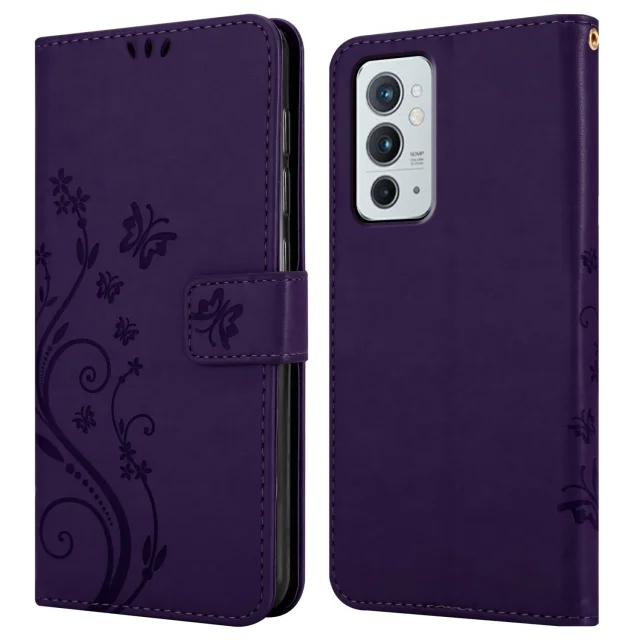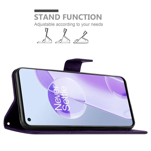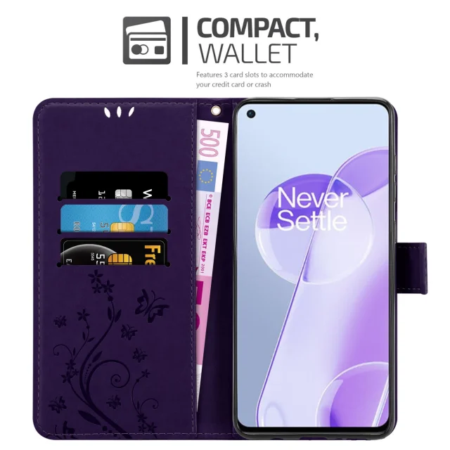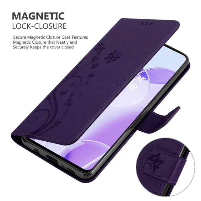 CADORABO OnePlus temno vijolična - zaščitni pokrov pri oblikovanju cvetja z magnetnim zapiranjem, stoječimi funkcijami in režami za kartice