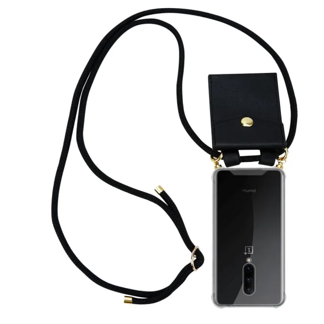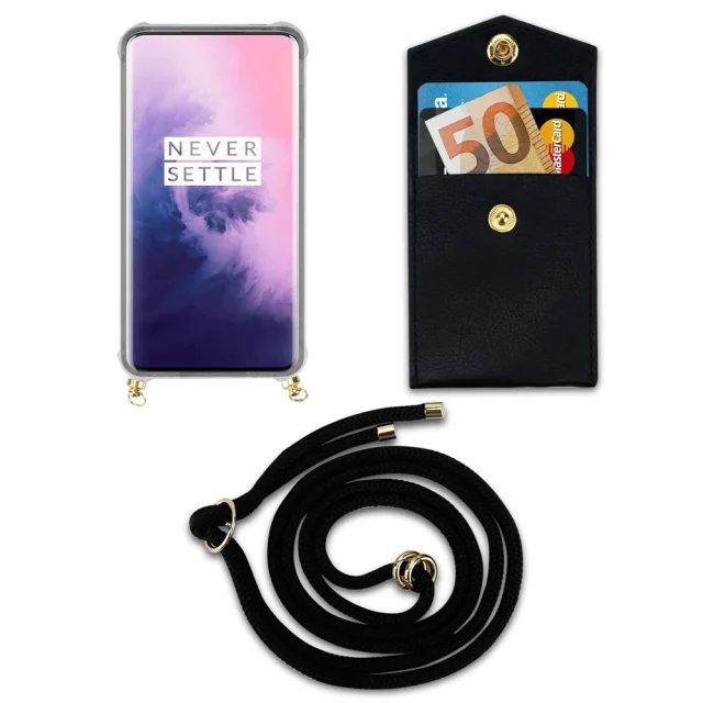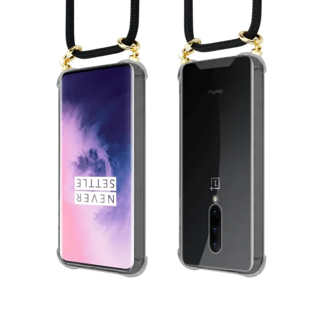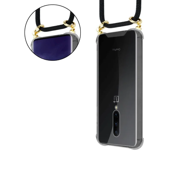 CADORABO OnePlus v črni barvi - silikonski zaščitni pokrov z zlatimi obroči, kabelskim pasom in snemljivim ohišjem