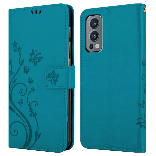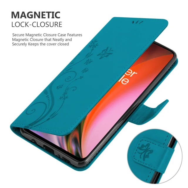 CADORABO OnePlus v cvetlični modri barvi - zaščitni pokrov pri oblikovanju cvetja z magnetnim zapiranjem, stoječimi funkcijami in režami za kartice