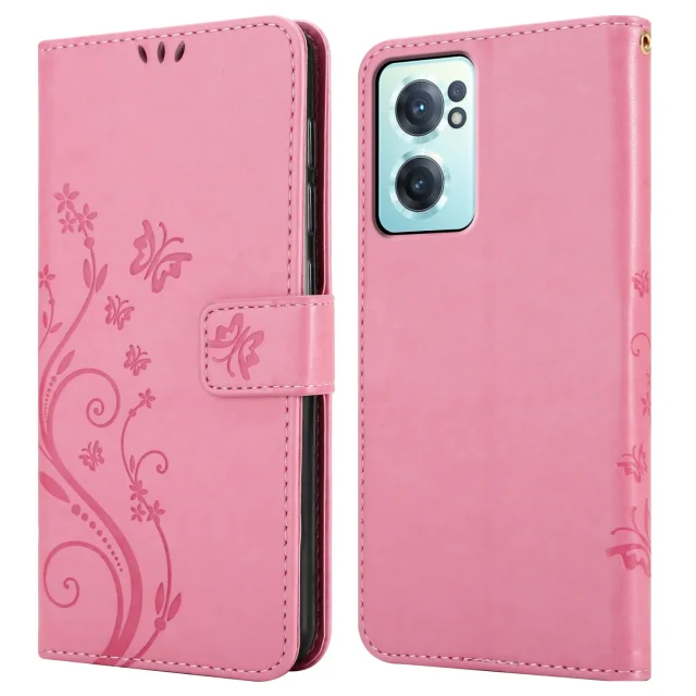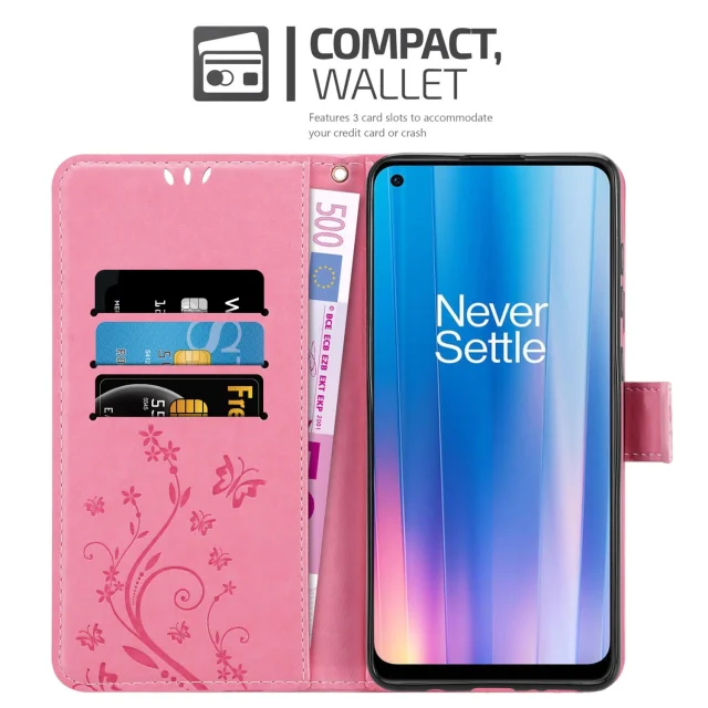CADORABO OnePlus v cvetlični roza barvi - zaščitni pokrov v oblikovanju cvetja z magnetnim zapiranjem, stoječimi funkcijami in režami za kartice
