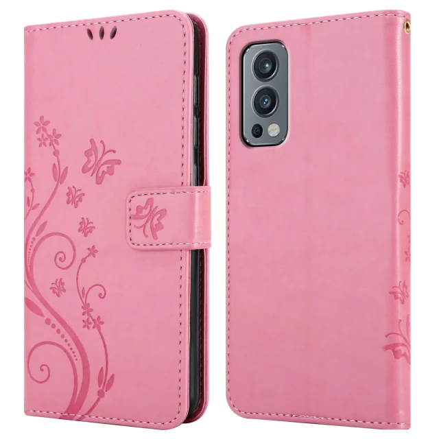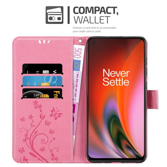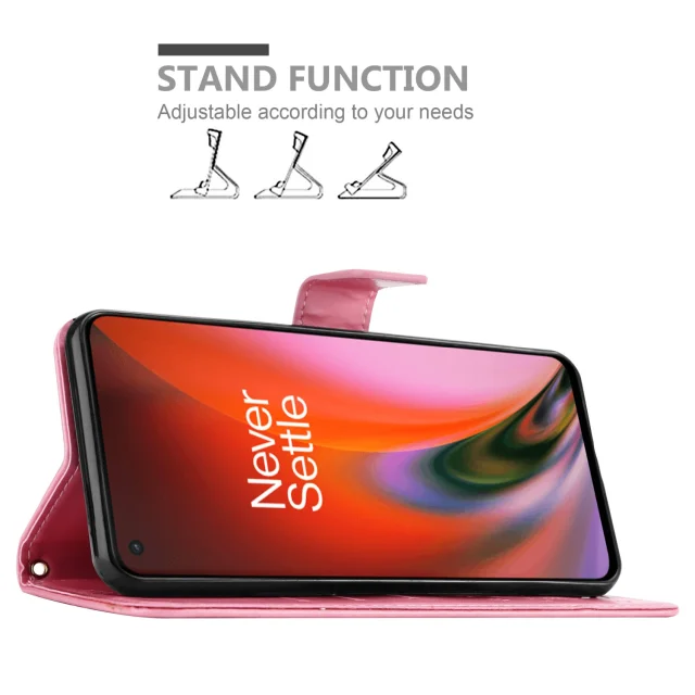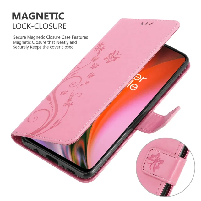 CADORABO OnePlus v cvetlični roza barvi - zaščitni pokrov v oblikovanju cvetja z magnetnim zapiranjem, stoječimi funkcijami in režami za kartice