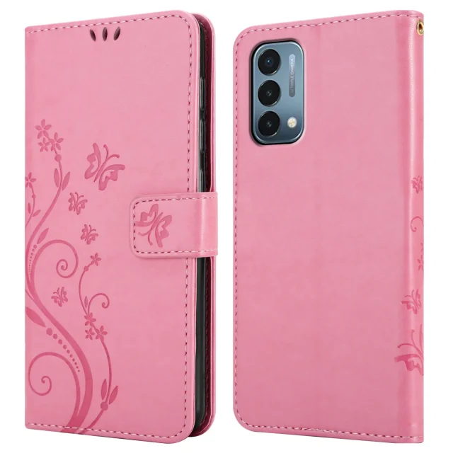 CADORABO OnePlus v cvetlični roza barvi - zaščitni pokrov v oblikovanju cvetja z magnetnim zapiranjem, stoječimi funkcijami in režami za kartice