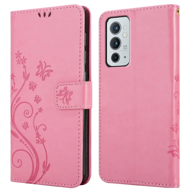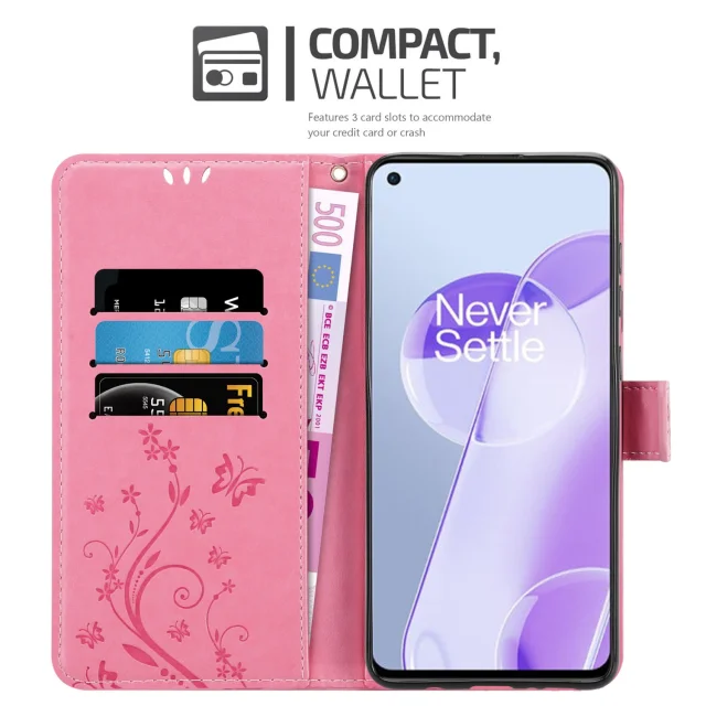 CADORABO OnePlus v cvetlični roza barvi - zaščitni pokrov v oblikovanju cvetja z magnetnim zapiranjem, stoječimi funkcijami in režami za kartice