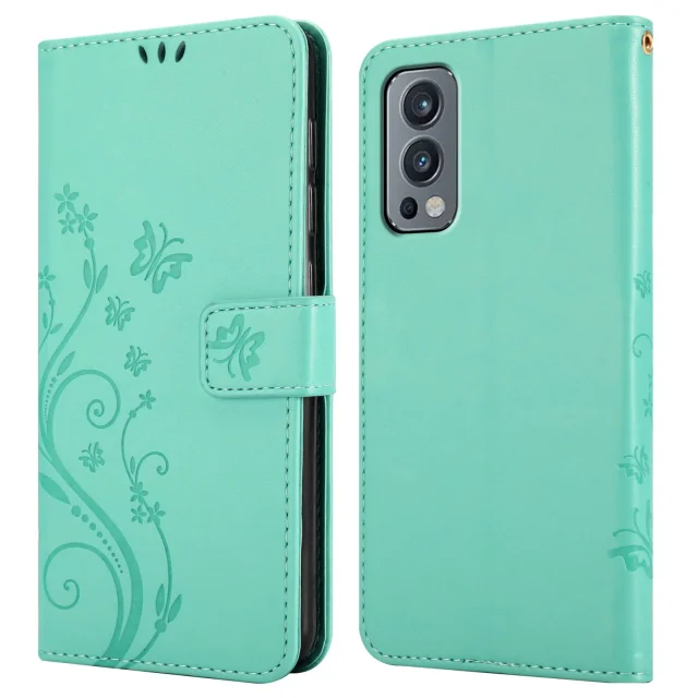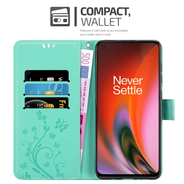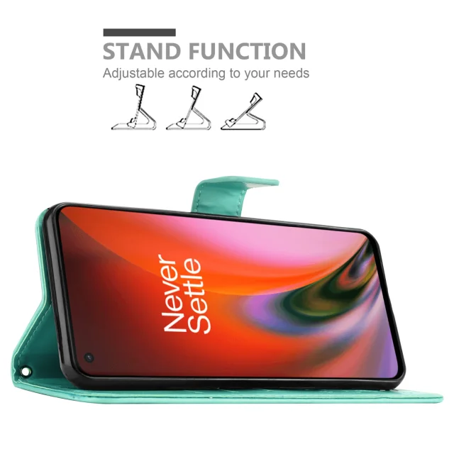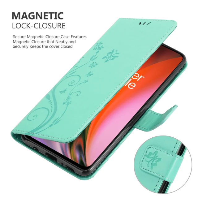 CADORABO OnePlus v cvetlični turkizni - Zaščitni pokrov v oblikovanju cvetja z magnetnim zapiranjem, stoječimi funkcijami in režami za kartice