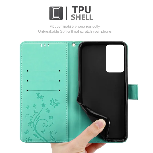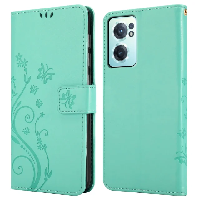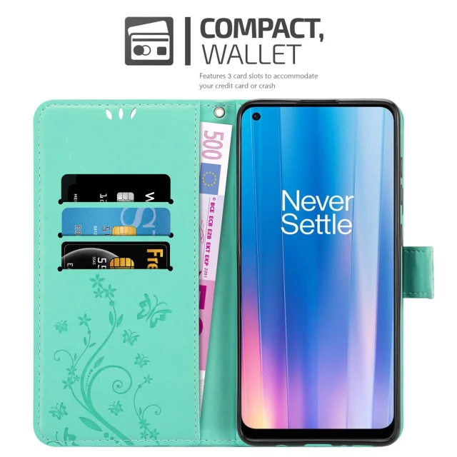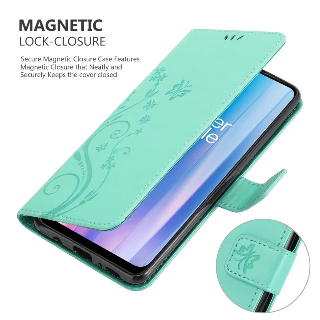CADORABO OnePlus v cvetlični turkizni - Zaščitni pokrov v oblikovanju cvetja z magnetnim zapiranjem, stoječimi funkcijami in režami za kartice