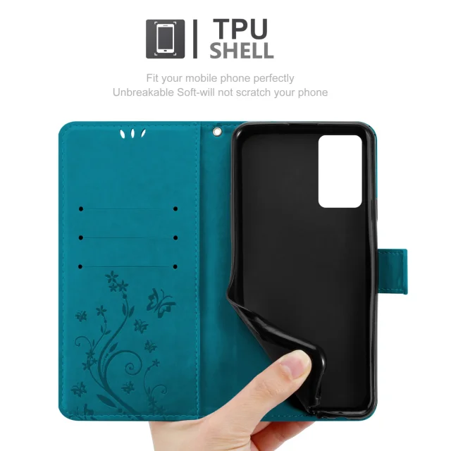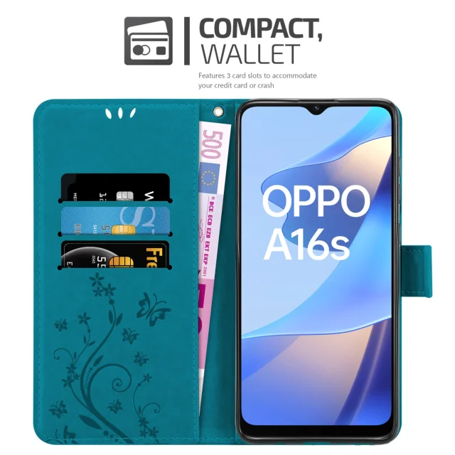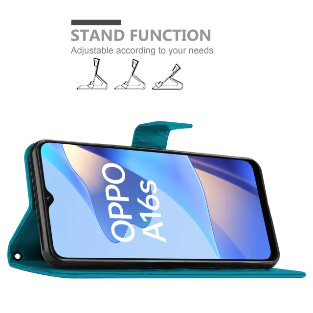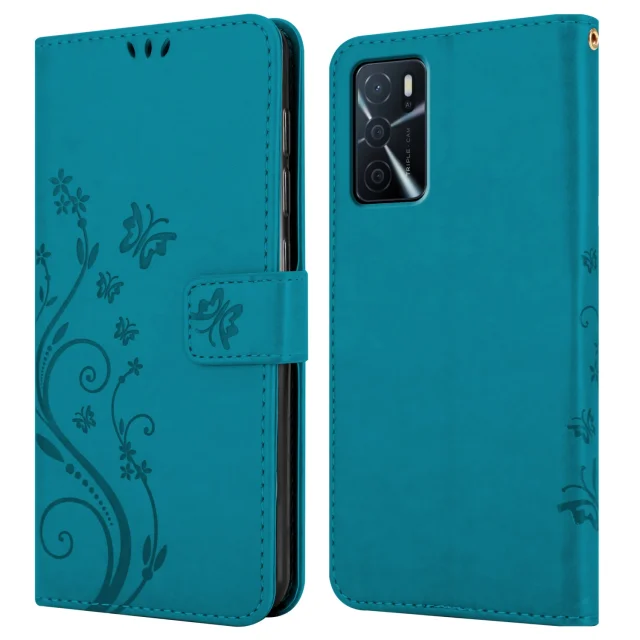 CADORABO OPPO v cvetlični modri barvi - zaščitni pokrov v oblikovanju cvetja z magnetnim zapiranjem, stoječimi funkcijami in režami za kartice