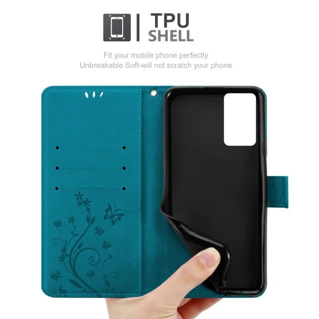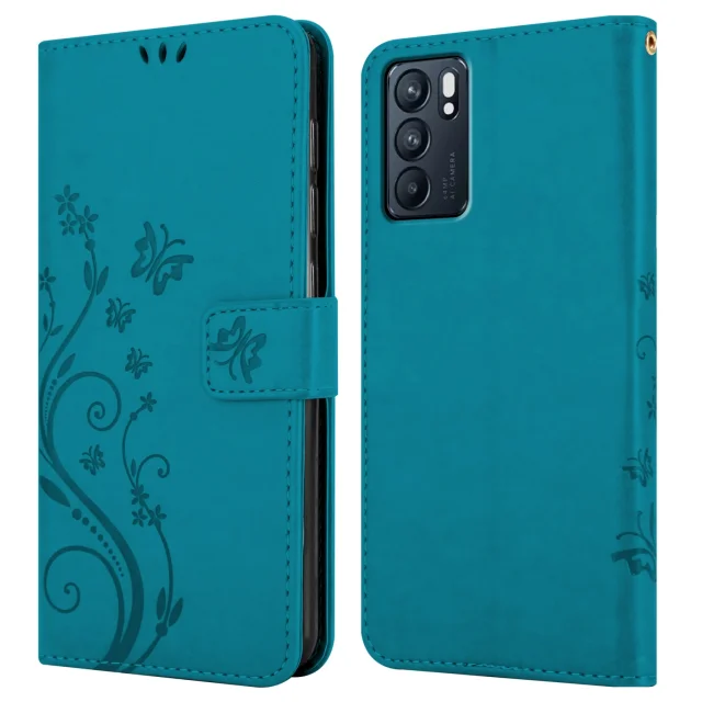 CADORABO OPPO v cvetlični modri barvi - zaščitni pokrov v oblikovanju cvetja z magnetnim zapiranjem, stoječimi funkcijami in režami za kartice