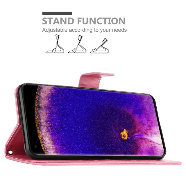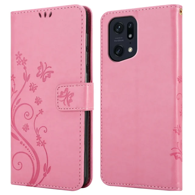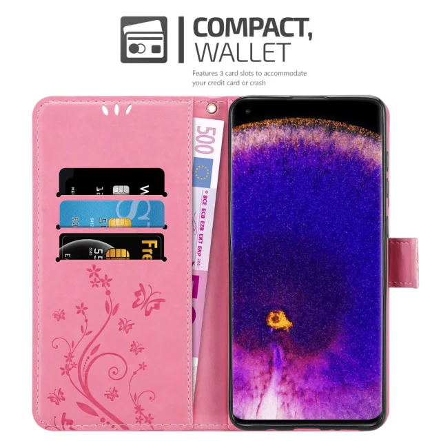CADORABO OPPO v cvetlični roza barvi - zaščitni pokrov pri oblikovanju cvetja z magnetnim zapiranjem, stoječimi funkcijami in režami za kartice