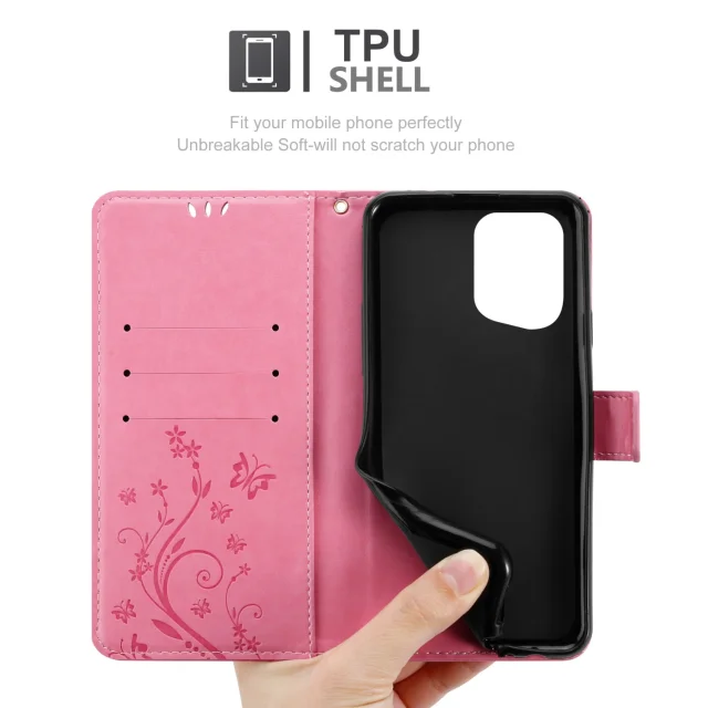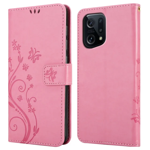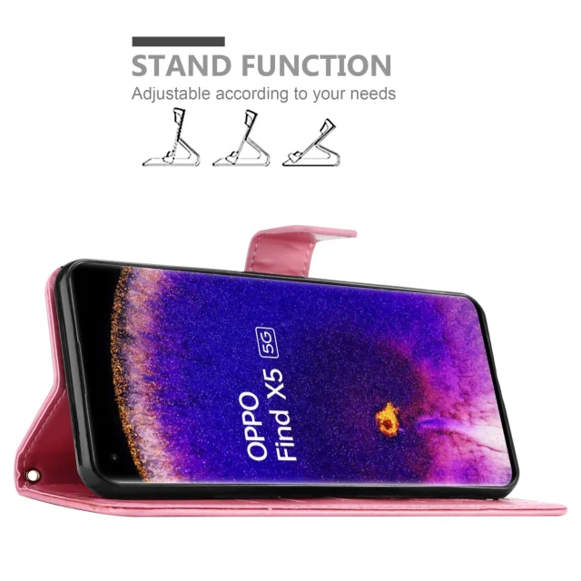 CADORABO OPPO v cvetlični roza barvi - zaščitni pokrov pri oblikovanju cvetja z magnetnim zapiranjem, stoječimi funkcijami in režami za kartice