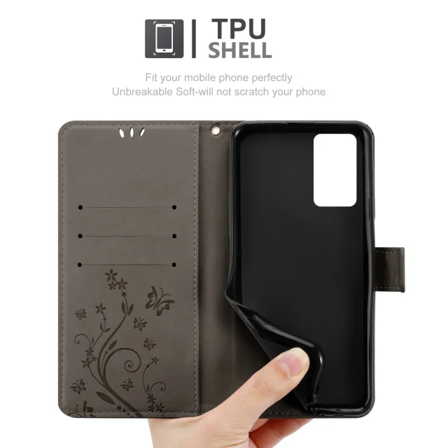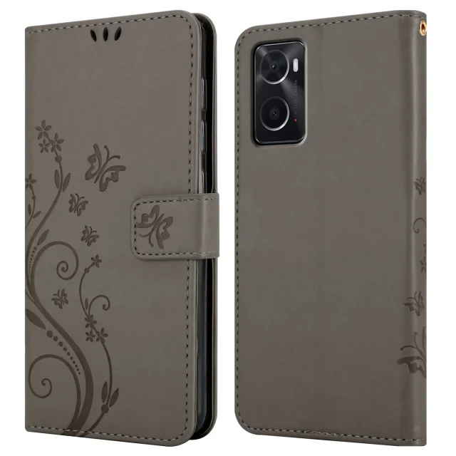 CADORABO OPPO v cvetlični sivi barvi - zaščitni pokrov pri oblikovanju cvetja z magnetnim zapiranjem, stoječimi funkcijami in režami za kartice