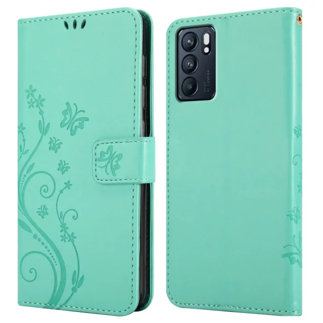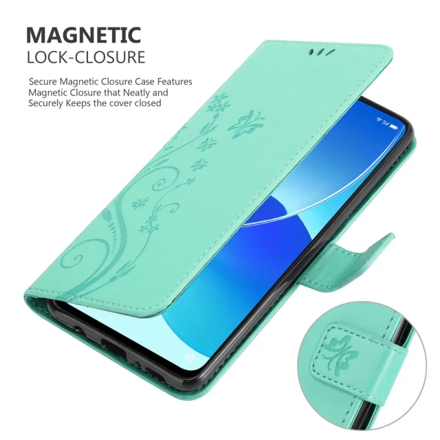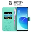 CADORABO OPPO v cvetlični turkizni - Zaščitni pokrov pri oblikovanju cvetja z magnetnim zapiranjem, stoječimi funkcijami in režami za kartice