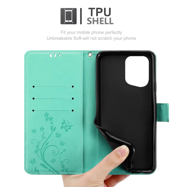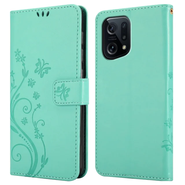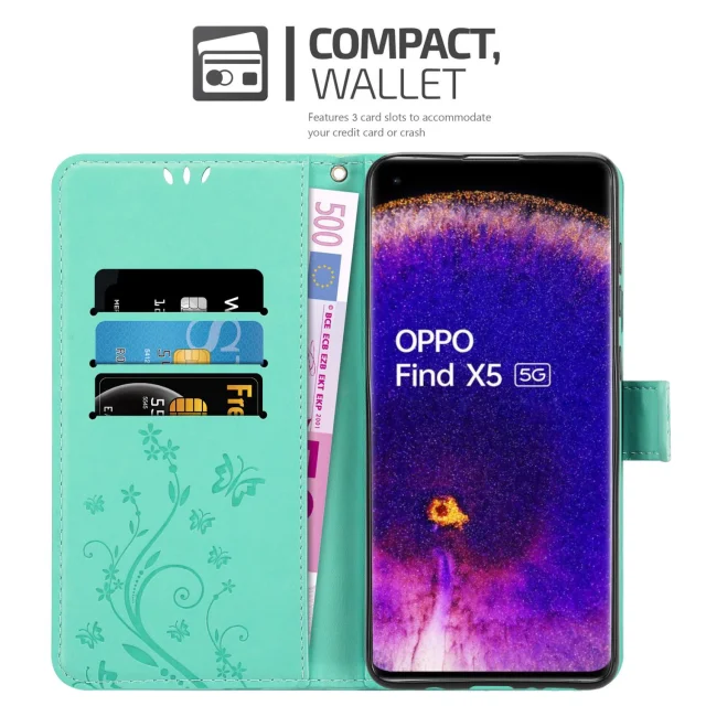CADORABO OPPO v cvetlični turkizni - Zaščitni pokrov pri oblikovanju cvetja z magnetnim zapiranjem, stoječimi funkcijami in režami za kartice