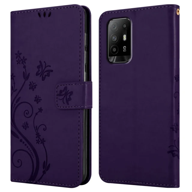 CADORABO OPPO v cvetni temno vijolični barvi - zaščitni pokrov v oblikovanju cvetja z magnetnim zapiranjem, stoječimi funkcijami in režami za kartice