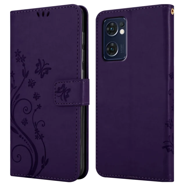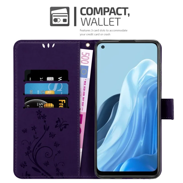 CADORABO OPPO v cvetni temno vijolični barvi - zaščitni pokrov v oblikovanju cvetja z magnetnim zapiranjem, stoječimi funkcijami in režami za kartice