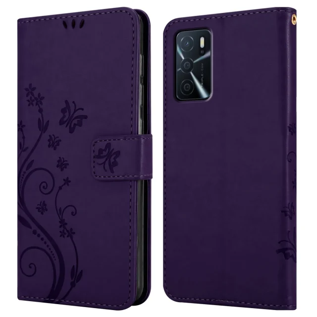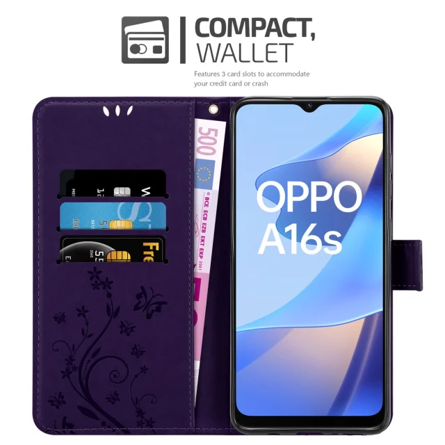 CADORABO OPPO v cvetni temno vijolični barvi - zaščitni pokrov v oblikovanju cvetja z magnetnim zapiranjem, stoječimi funkcijami in režami za kartice