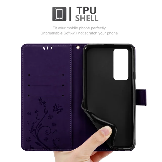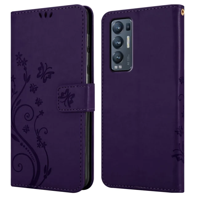 CADORABO OPPO v cvetni temno vijolični barvi - zaščitni pokrov v oblikovanju cvetja z magnetnim zapiranjem, stoječimi funkcijami in režami za kartice