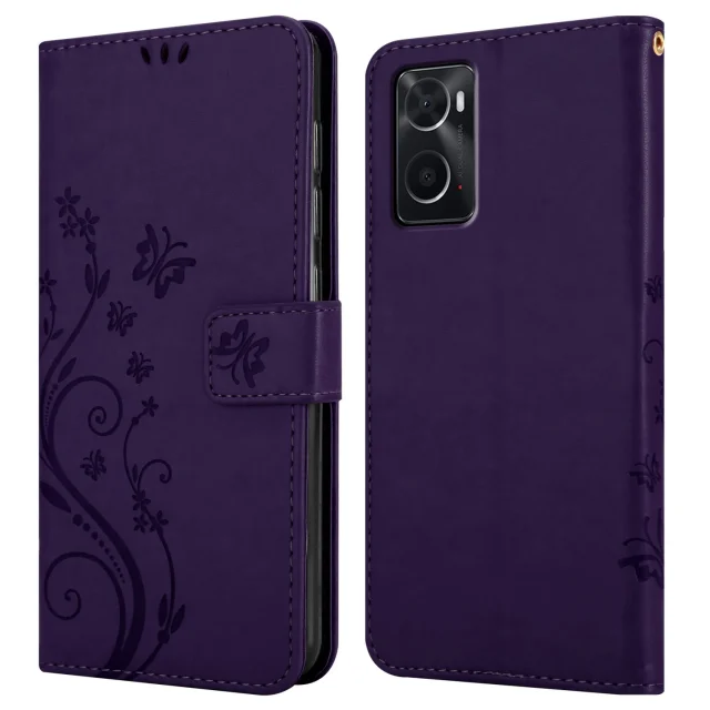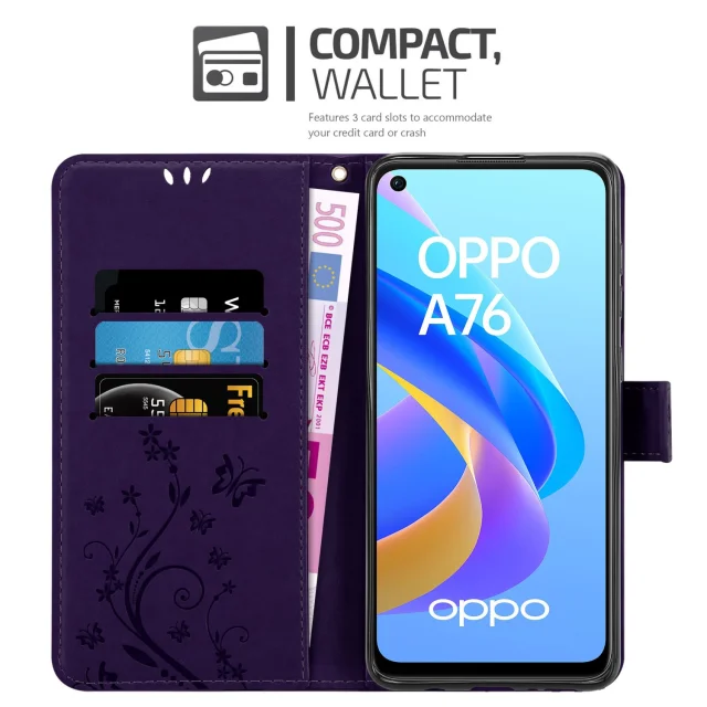 CADORABO OPPO v cvetni temno vijolični barvi - zaščitni pokrov v oblikovanju cvetja z magnetnim zapiranjem, stoječimi funkcijami in režami za kartice