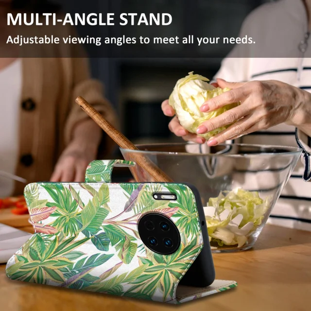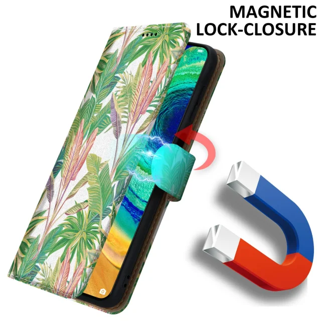 CADORABO primera, združljiv s Huawei - Design Green Rainforest št. 8 - Zaščitni pokrov z magnetnim zapiranjem, funkcijo stojala in režo za kartico