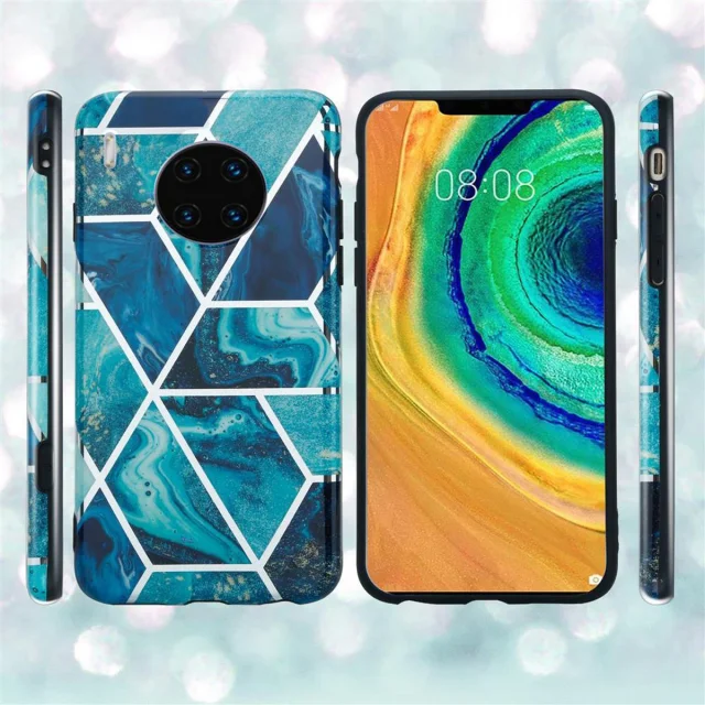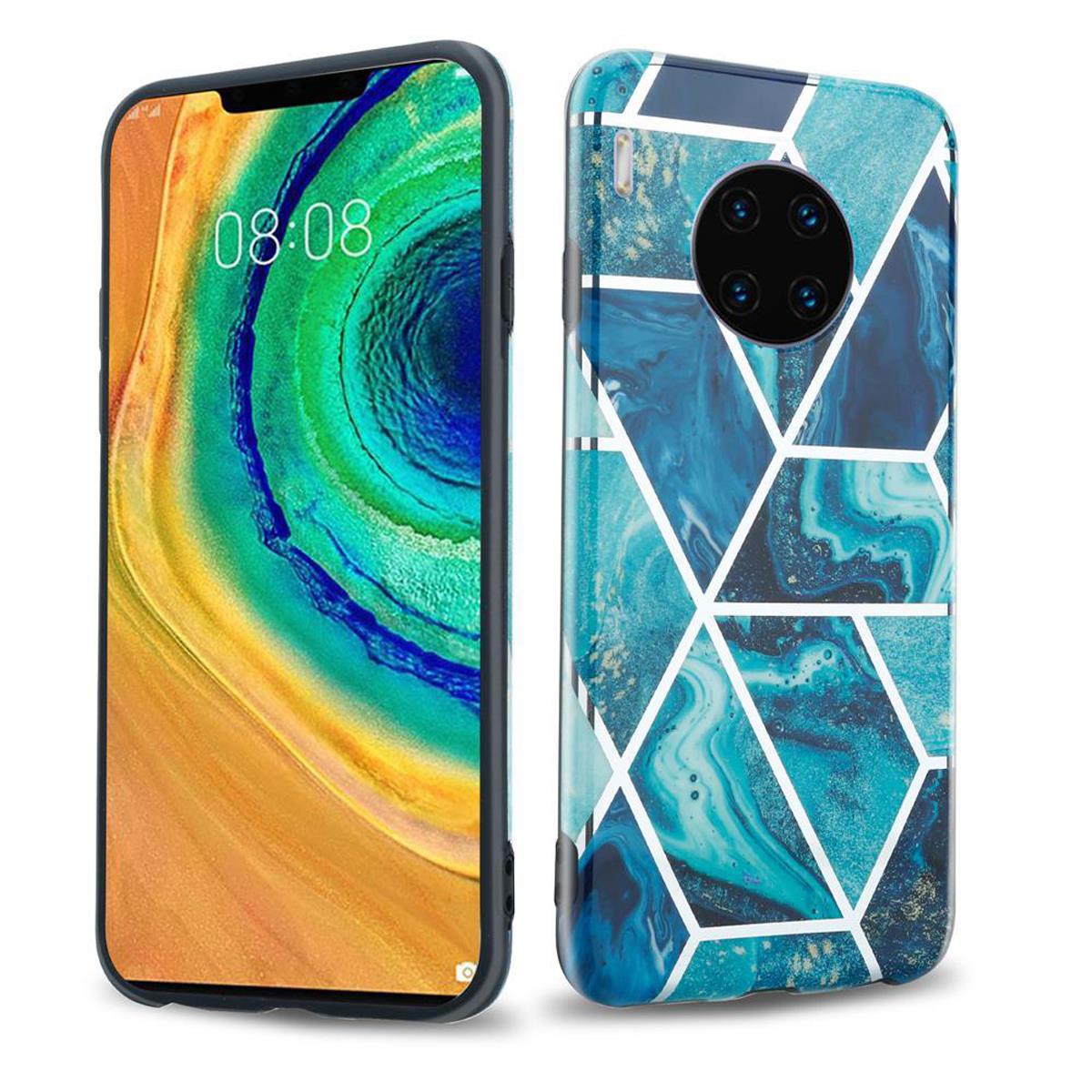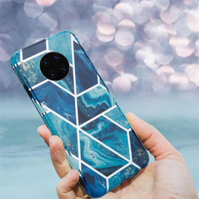 CADORABO primera, združljiv s Huawei v marmorju Blue Wave št. 13 - Zaščitni pokrov iz silikona TPU z vzorcem mozaika