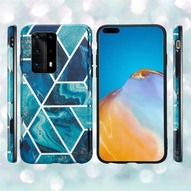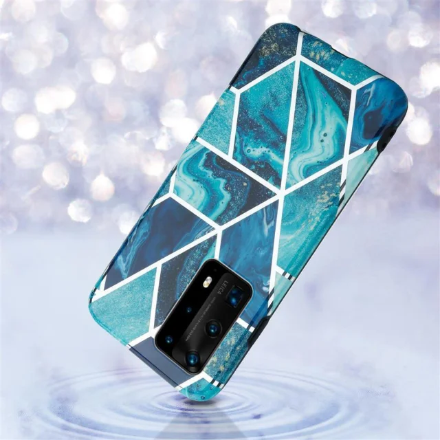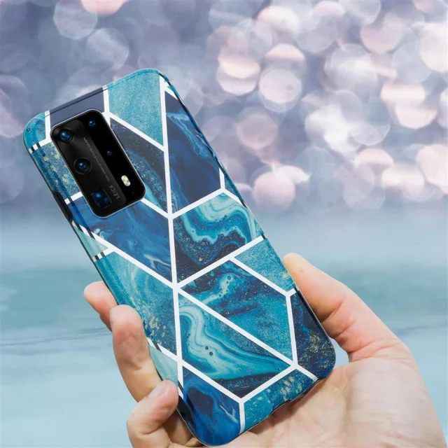 CADORABO primera, združljiv s Huawei v marmorju Blue Wave št. 13 - Zaščitni pokrov iz silikona TPU z vzorcem mozaika