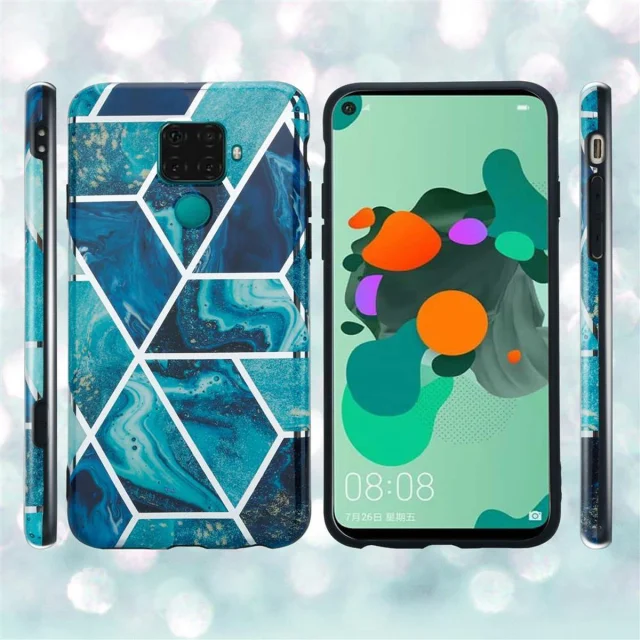 CADORABO primera, združljiv s Huawei v marmorju Blue Wave št. 13 - Zaščitni pokrov iz silikona TPU z vzorcem mozaika