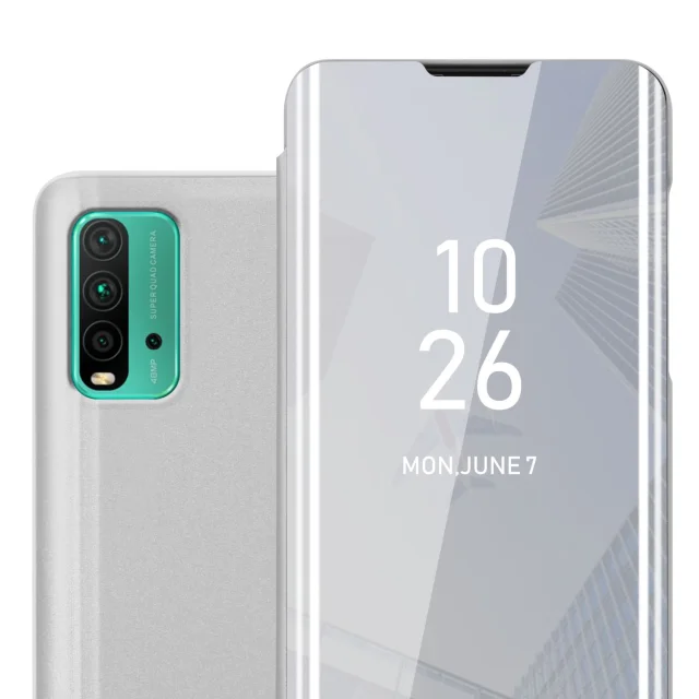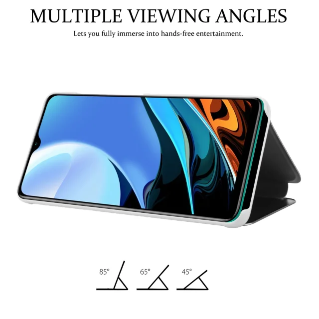 CADORABO primera, združljiv z Xiaomi v Agate Silver - Clear View Zrcalo Zaščitni pokrov s funkcijo stojala 360 stopinj zaščita