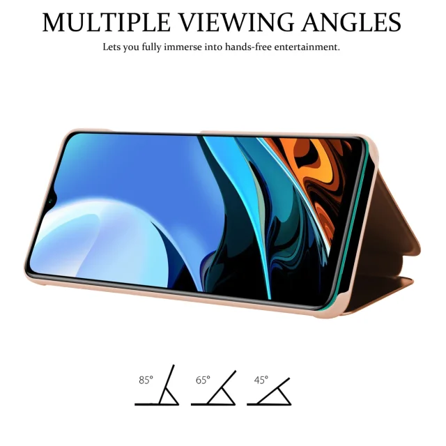 CADORABO primera, združljiv z Xiaomi v Kunzit Pink - Clear View Zrcalo Zaščitni pokrov s funkcijo stojala 360 stopinj zaščita