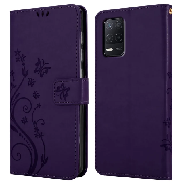 CADORABO RealMe temno vijolična - zaščitni pokrov pri oblikovanju cvetja z magnetnim zapiranjem, stoječimi funkcijami in režami za kartice