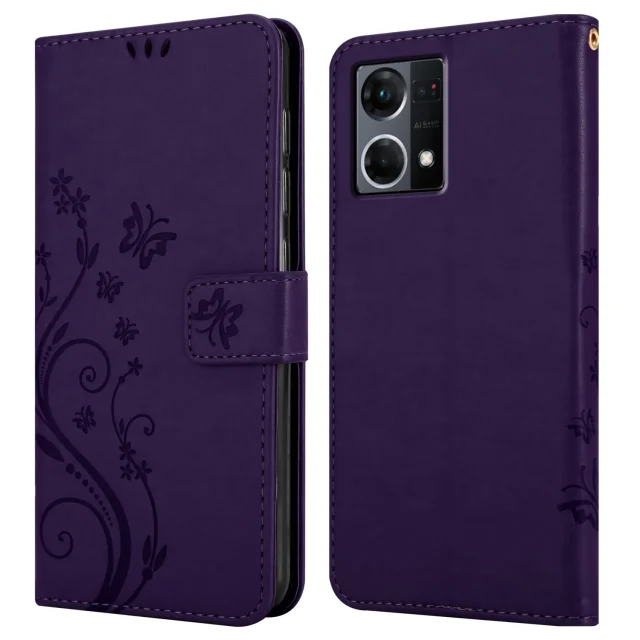 CADORABO RealMe temno vijolična - zaščitni pokrov pri oblikovanju cvetja z magnetnim zapiranjem, stoječimi funkcijami in režami za kartice